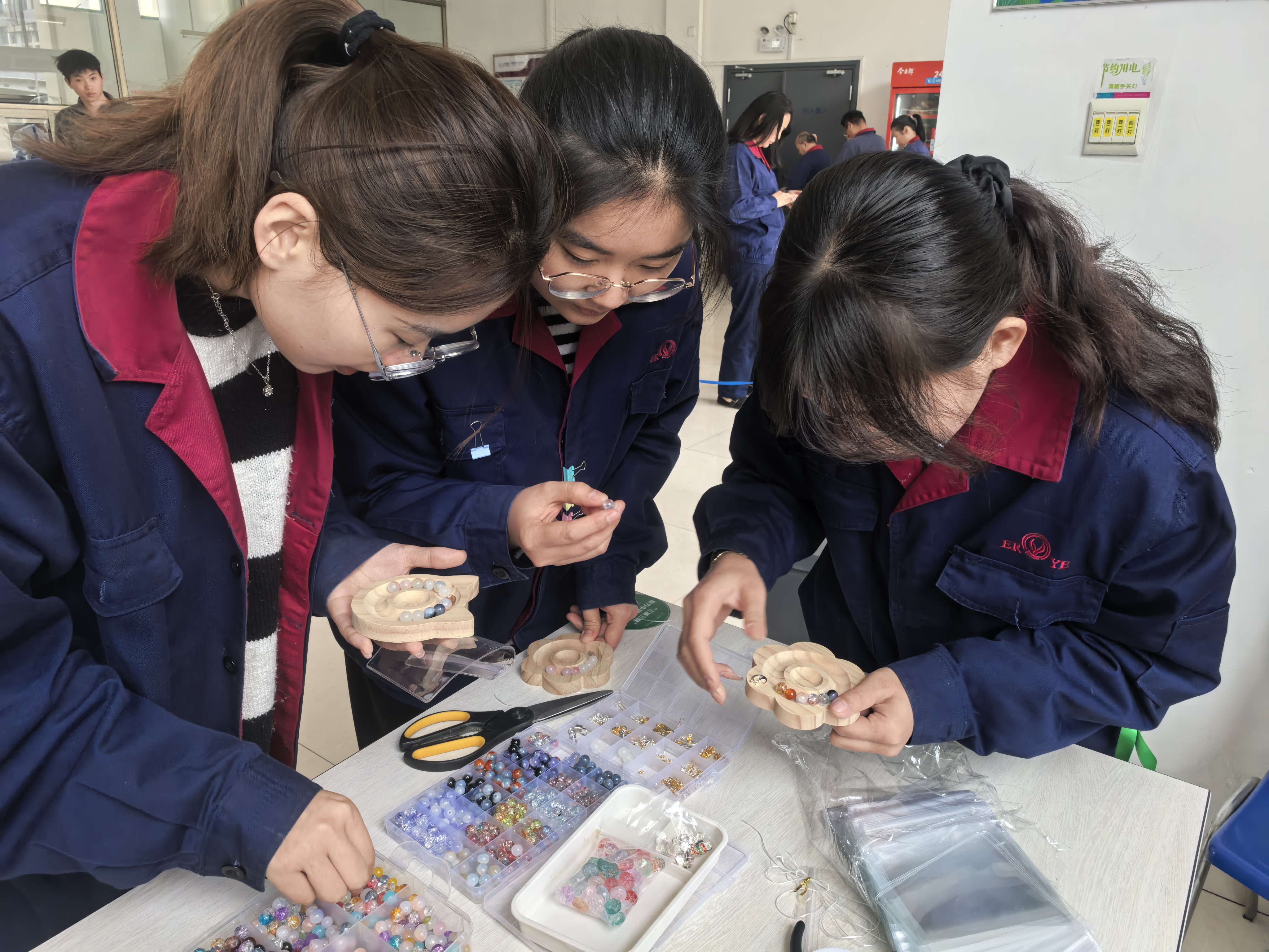 上午10时30分,轻松愉悦的手工串珠活动在【食堂】同步进行。现场五彩斑斓的珠子吸引了众多同事驻足参与。无论是否有手工基础,大家纷纷化身能工巧匠,在珠盘间发挥创意,将一颗颗散落的珠子,串联成独一无二的专属饰品。现场欢声笑语不断,大家在手作中感受着乐趣与温暖,也为这个节日留下了一份亲手打造的独特纪念。